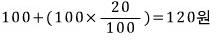 100원에서 20%가 증가하고, 여기에서 다시 20%가 증가하면
