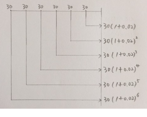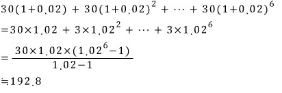 월이율 2%로 30만원씩 6개월 적금을 부으면