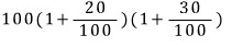 100원에서 20%가 증가하고, 여기에서 다시 30%가 증가하면