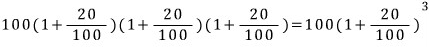 100원에서 20%가 증가하고, 여기에서 다시 20%가 증가하고, 여기에서 다시 20%가 증가하면