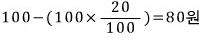 100원에서 20%가 감소하고, 여기에서 다시 20%가 감소하면