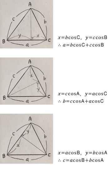 예전에는 제1코사인 법칙이라고 불렸던 공식입니다.