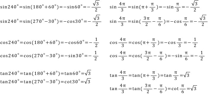 240˚는 3사분면의 각이고, 3사분면에서 sin은 -이므로