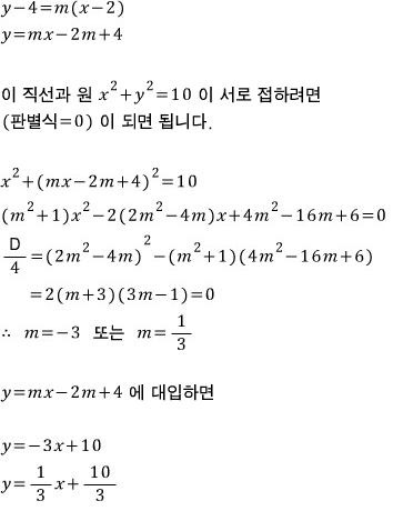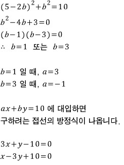 원 밖의 점에서 원에 그은 접선의 방정식입니다.