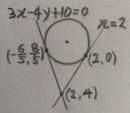 원 x²+y²=4 에 그은 접선의 방정식은?