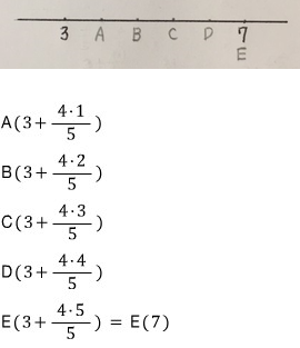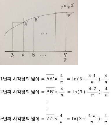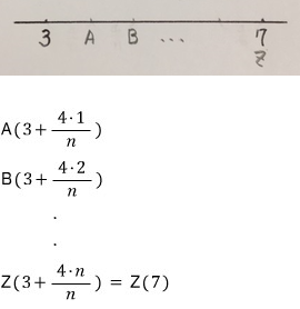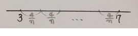 3과 7사이를 n등분 하면, 하나의 간격은 4/n