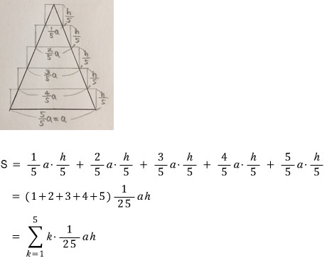 삼각형을 5등분해서 직사각형을 만들고