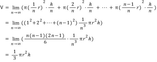 원뿔을 n등분해서 원기둥을 만들고