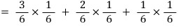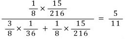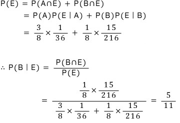 (파란색 주사위를 택하고)(5가 나왔거나) + (빨간색 주사위를)(5가) + (노란색 주사위를)(5가)
