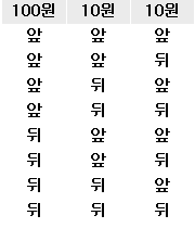 전체 경우의 수는 8가지 (← 2x2x2=8)