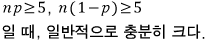 n이 충분히 크면 X는 근사적으로 정규분포 N(np, np(1-p))를 따른다.