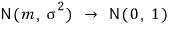 평균 m, 표준편차 σ인 정규분포를