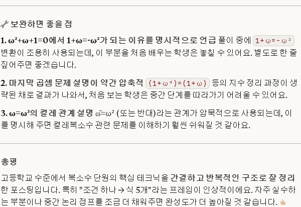 방정식 x³=1의 한 허근을 ω라 할 때만 풀었지만