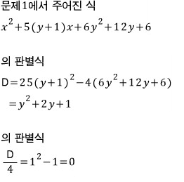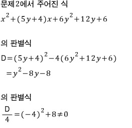 문제1에서 주어진 식은 x, y에 대한 두 일차식의 곱으로 인수분해가 되고