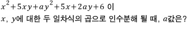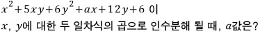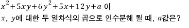 주어진 식이 x, y에 대한 두 일차식의 곱으로 인수분해가 된 것이고