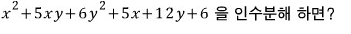 주어진 식이 x, y에 대한 두 일차식의 곱으로 인수분해가 되는 것입니다.