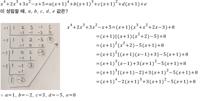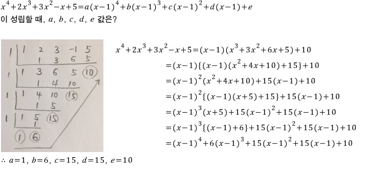 이제 위에 나온 3개의 조립제법과 식을 하나로 모아보면