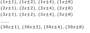 (x-1), (x+1), (x-2), (x+2), (x-3), (x+3), (x-4), (x+4), ...