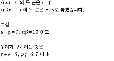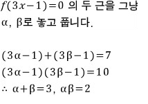 두 근의 합이 7, 곱이 10이면