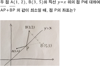 (x, x), (3, 5) 사이의 거리의 합..!!의 최솟값을 구하라는 것이고