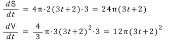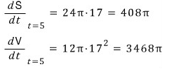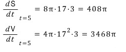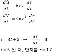 5초일 때, 구의 겉넓이와 부피의 순간변화율은?