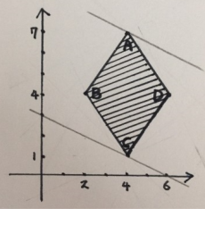 점 D(6, 4)를 지날 때, 최댓값