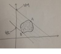 점 B를 지날 때, 최소가 되는 건 맞긴 맞는데