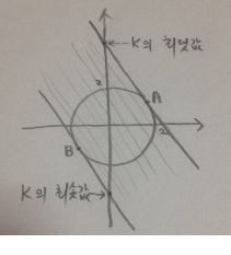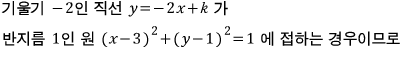 이제 직선이 원에 접할 때의 k값만 구하면 됩니다.