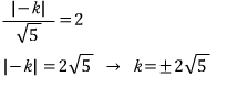 직선 y=-2x+k 까지의 거리는 원의 반지름 2