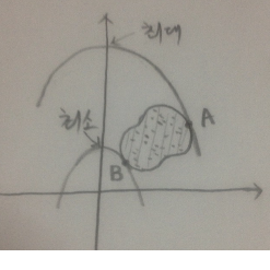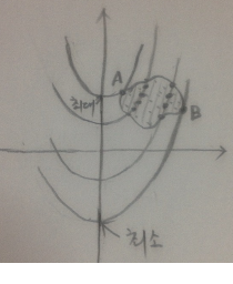 점 B를 지날 때, 최소가 되는 건 맞긴 맞는데