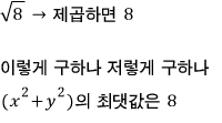 (최솟값은 이 때 생기는 원의 반지름의 제곱입니다.)