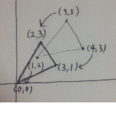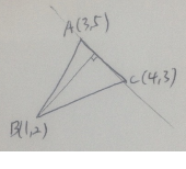 세 점 A(3, 5), B(1, 2), C(4, 3)으로 이루어진