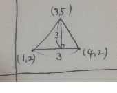 세 점 A(3, 5), B(1, 2), C(4, 2)로 이루어진