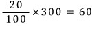 20%의 소금물 300g에 녹아있는 소금의 양은?