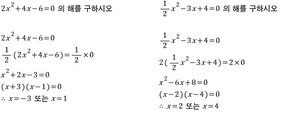 방정식의 양변에 같은 수를 곱하거나 나눠주는 것은 상관없습니다.