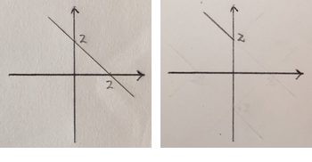 그래프를 그리고, x≥0, y≥0 부분만 놔둡니다.
