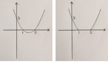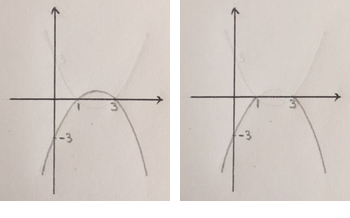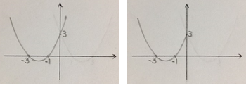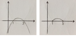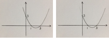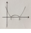 그래프를 그리고, x<1 또는 x>3 부분만 놔둡니다.