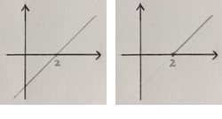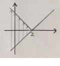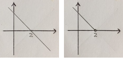 그래프를 그리고, x<2 부분만 놔둡니다.