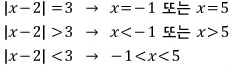부등식은 '절댓값 (3)'의 문제1과 문제2를 참고하세요~