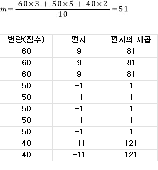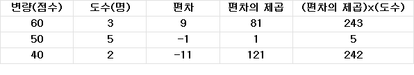 여기서 (편차의 제곱)의 합은