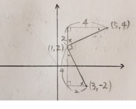 점 (5, 4)를 (1, 2)를 중심으로 시곗바늘이 도는 방향으로 90˚만큼 회전시킨 점의 좌표는?