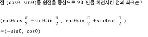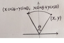 점 (x, y)를 원점을 중심으로 θ만큼 회전시킨 점의 좌표는