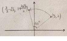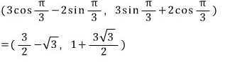 점 (3, 2)를 원점을 중심으로 60˚만큼 회전시킨 점의 좌표는?