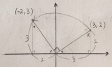 점 (3, 2)를 원점을 중심으로 90˚만큼 회전시킨 점의 좌표는?