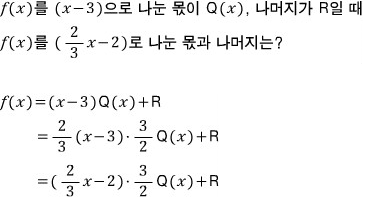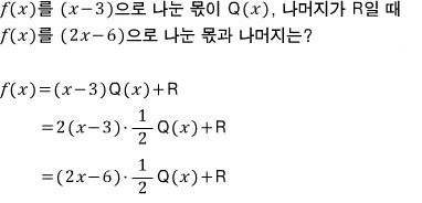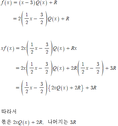 xf(x)를 (1/2x-3/2)으로 나눈 몫과 나머지는?