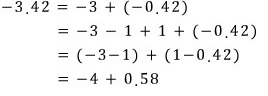 (-3.42) - (-3.42의 정수부분) = (-3.42) - (-4) = 0.58