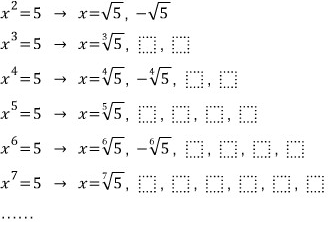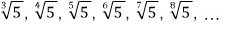 세제곱근 루트 오, 네제곱근 루트 오, 다섯제곱근 루트 오, 여섯제곱근 루트 오, ...