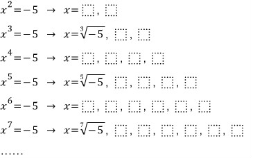 -5의 다섯제곱근은 5개 (실수 1개, 허수 4개)