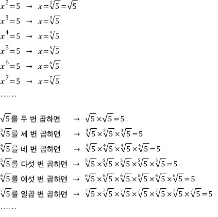 두 번 곱해서 5가 되는 수 (5의 제곱근)는